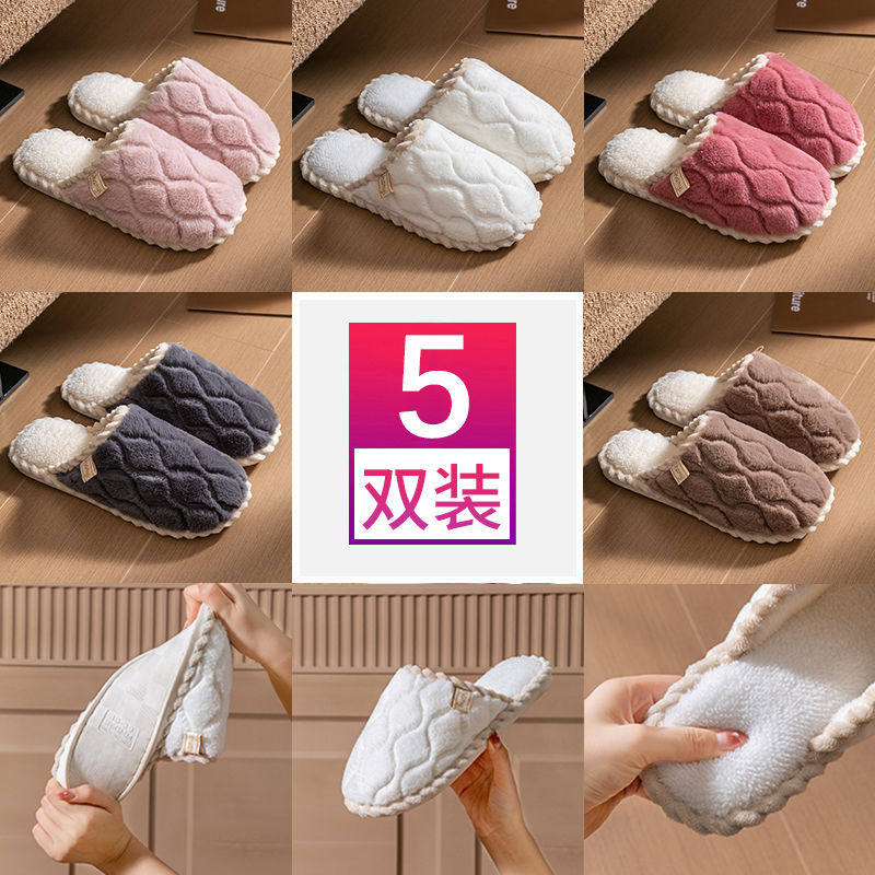 5双棉拖鞋女秋冬季新款居家居待客人毛绒家用室内防滑W保暖男冬天