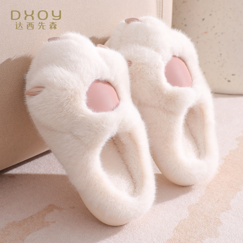 猫爪拖鞋女秋冬季可爱室内居家用厚底网红毛绒情侣棉拖鞋女士冬天