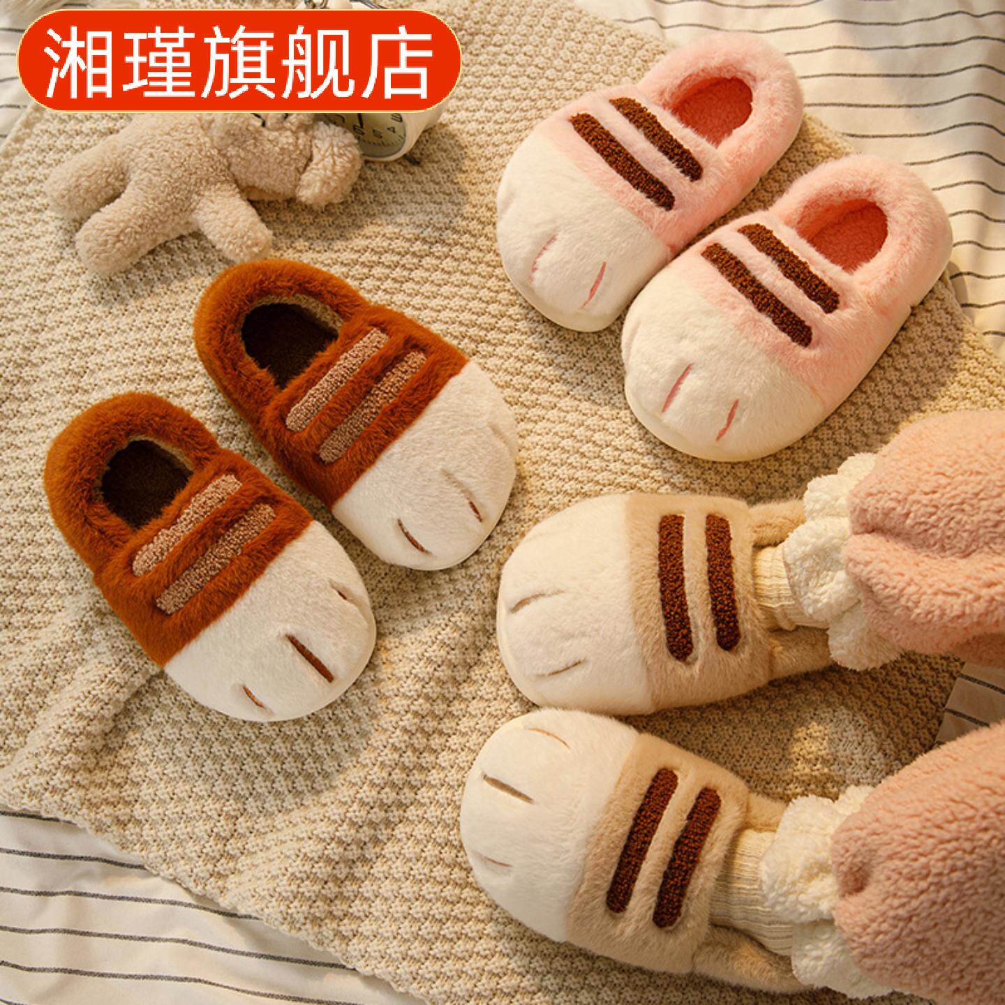 秋冬萌趣猫爪棉鞋加绒加厚可爱情侣外穿居家用室内棉拖鞋