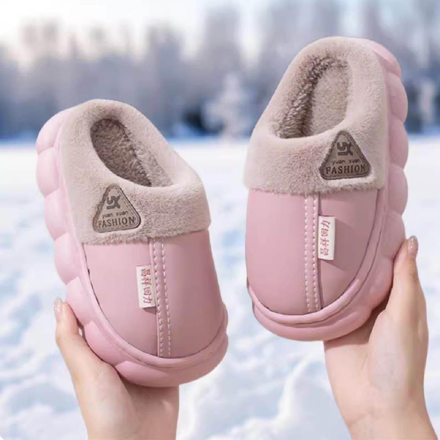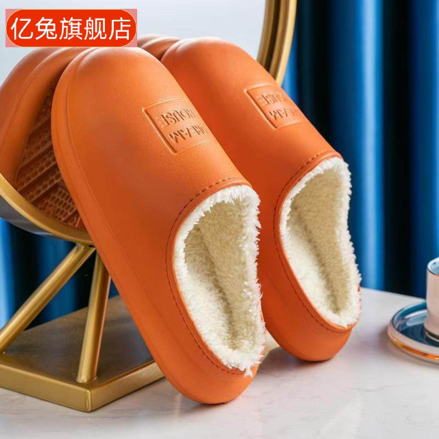 秋冬防水棉拖鞋厚底室内防滑棉拖女加绒外穿居家情侣保暖棉鞋男