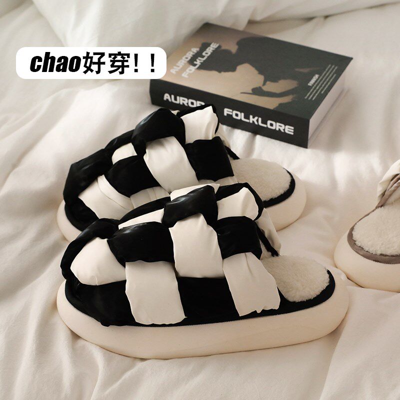外穿棉拖鞋女冬季时尚增高厚底拖鞋女士冬天家用室S内棉拖网红ins