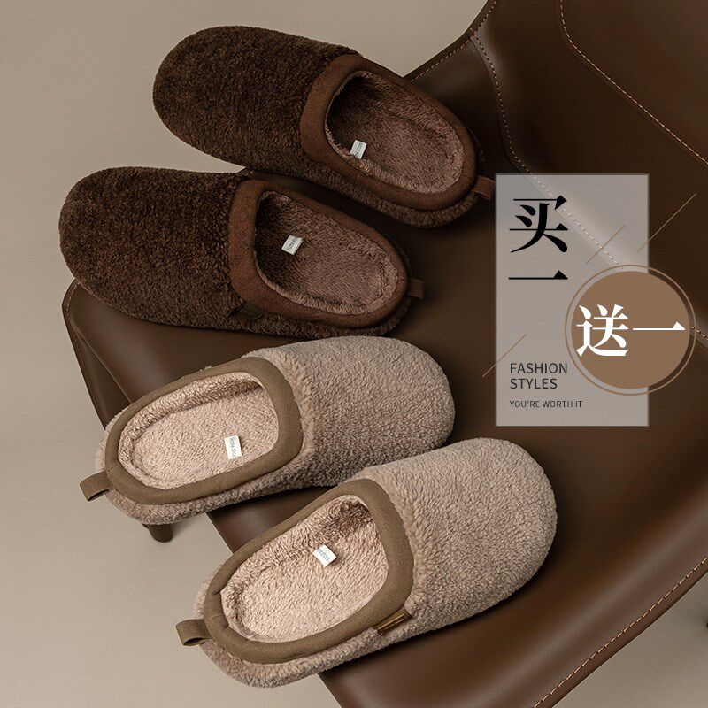 2双装毛绒棉拖鞋女秋冬季办公室厚底G防滑男居家保暖加绒冬天情侣