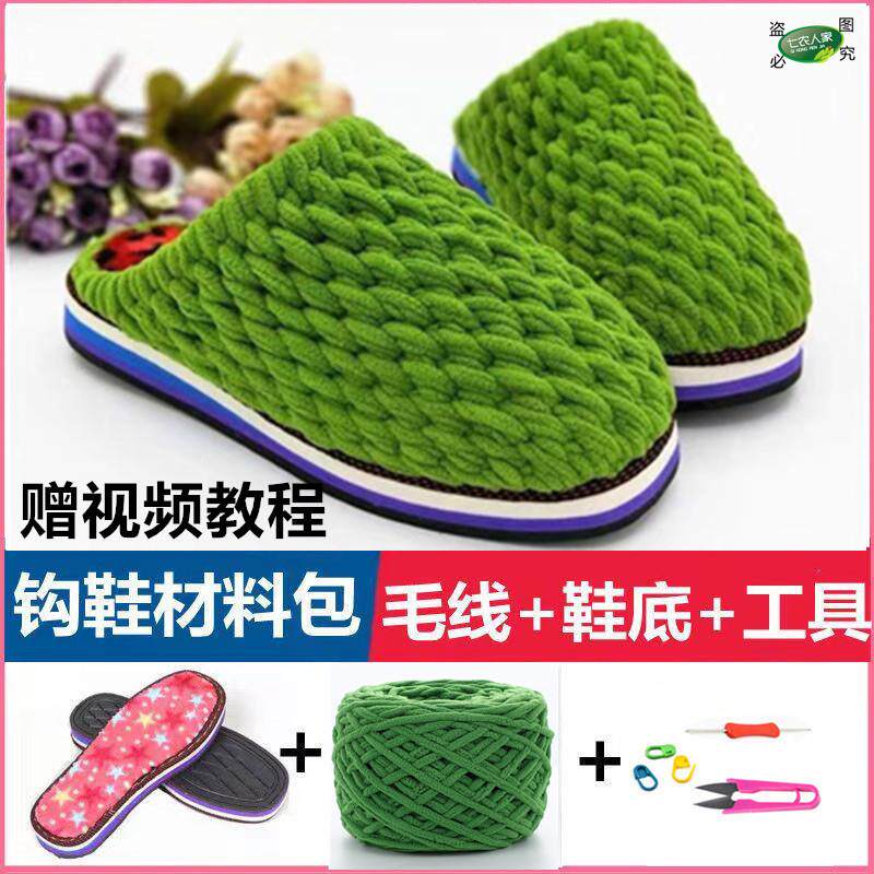 新品自己勾的毛拖鞋手工diy编织半成品钩织O材料包保暖加绒室内居
