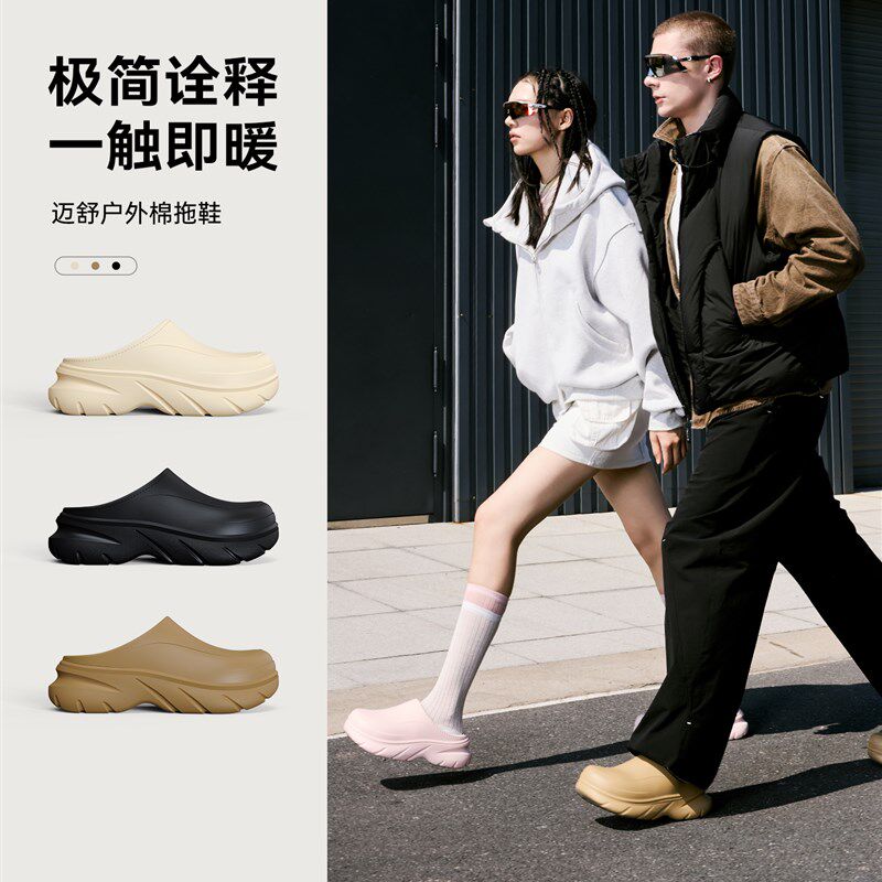 亚束迈舒棉拖鞋新款女秋冬加厚室内保G暖厚底防滑防水情侣男士棉