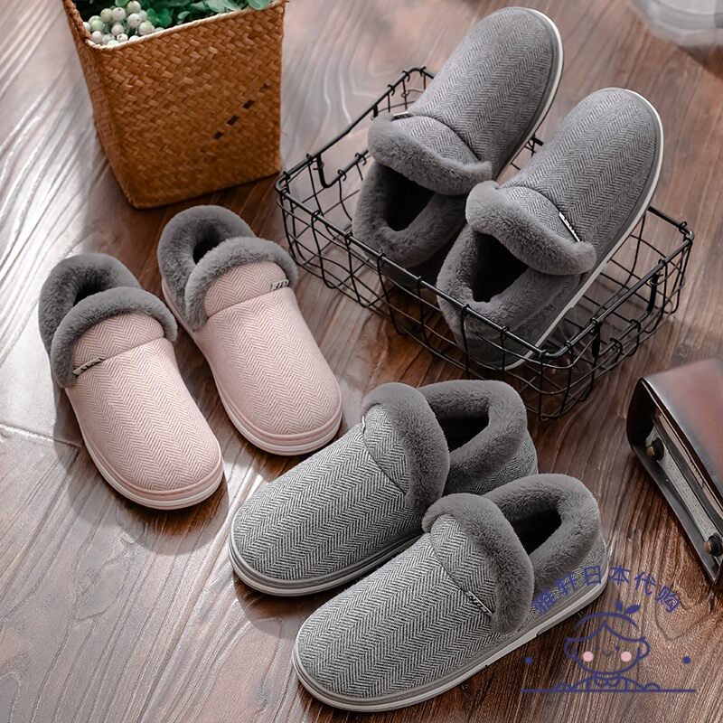 极速日本大尺码包跟棉拖鞋男冬季厚底毛毛拖鞋家居室内防滑男士棉
