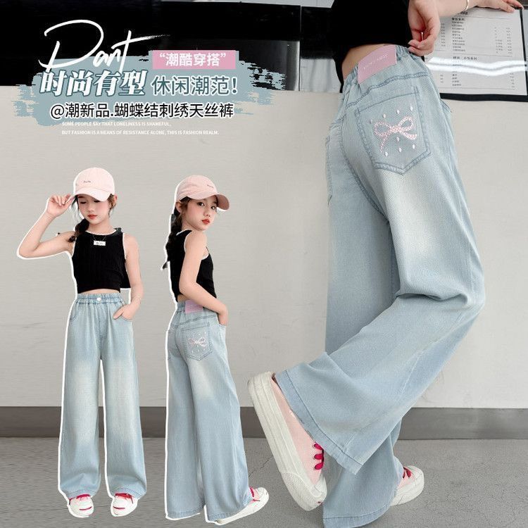 女童裤子夏装洋气宽松儿童中大童休闲防蚊薄款夏季天丝牛仔阔腿裤