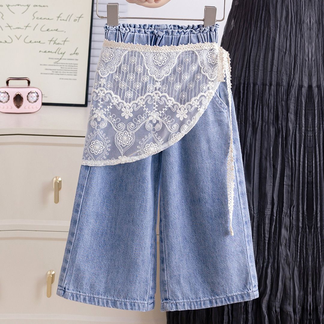女童牛仔裤2025春新款儿童韩版宽松女孩洋气宝宝中小童直筒阔腿裤