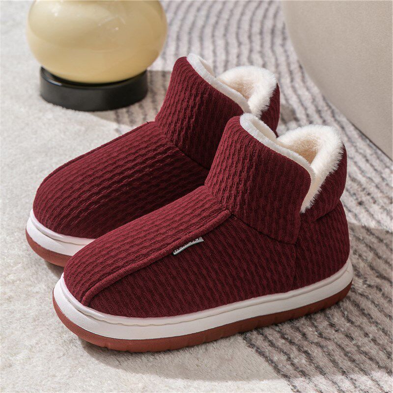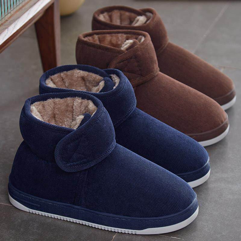 冬季加绒加厚男女高帮保暖棉鞋居家外穿包跟老年人防滑厚底棉拖鞋