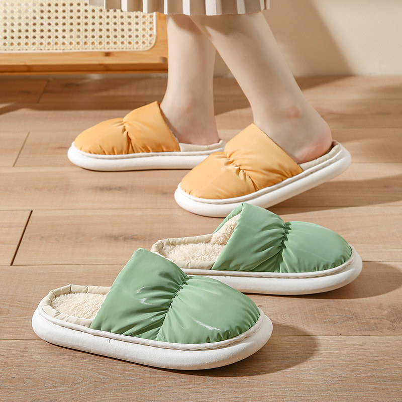 女冬季保暖泰迪绒室内家居软底家居拖鞋防水防滑静音简约厚底不臭