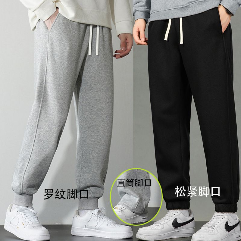休闲卫裤男士秋季新款宽松束脚男款秋冬季加绒加厚针织运动裤子男