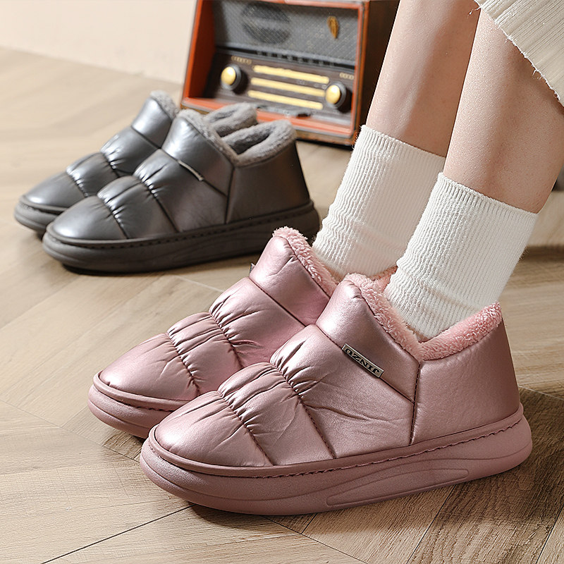 羽绒棉拖鞋男士防滑保暖居家防水棉拖女款家居厚底毛拖鞋冬季