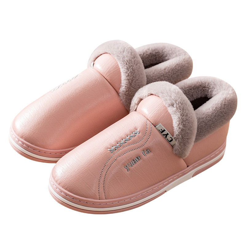 秋冬季情侣高级感羊巴皮防水PU皮棉拖鞋女室内轻便牛筋底居家鞋男