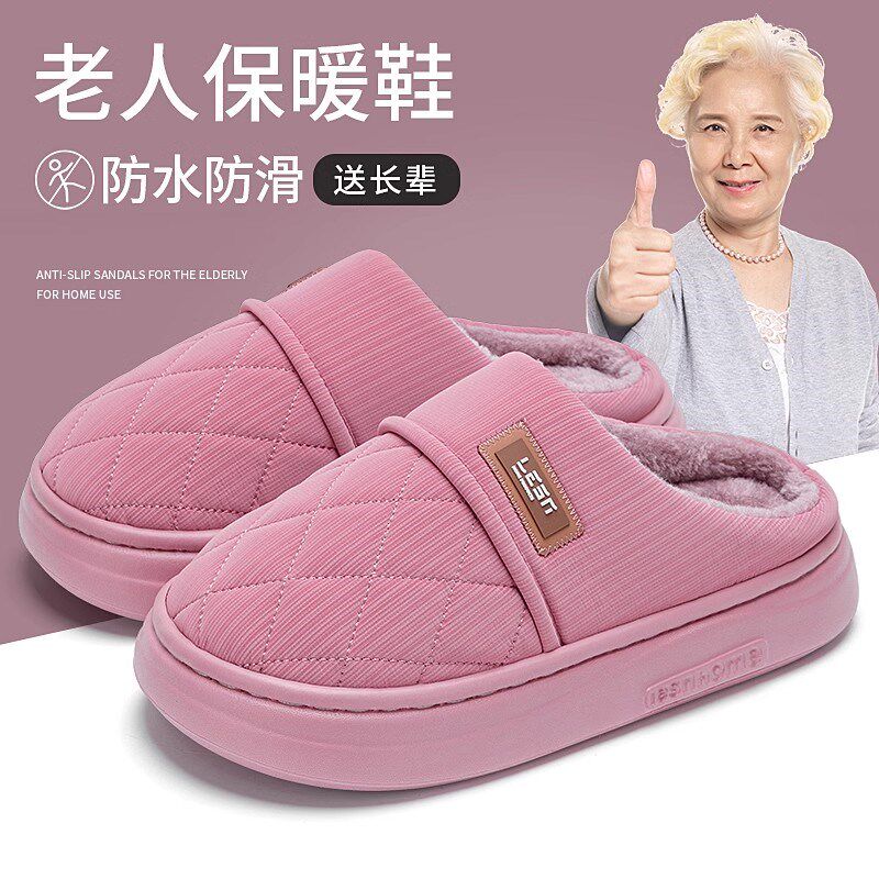 老人防水棉拖鞋2024新款女士秋冬季室内家居保暖厚底防Z滑加绒拖