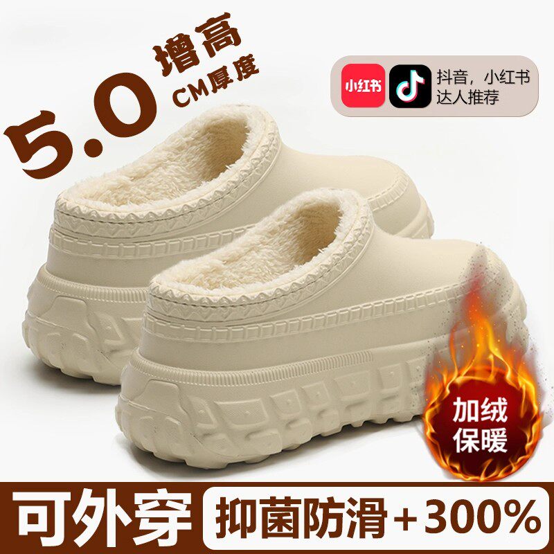 日本厚底棉拖鞋女2025新款加绒家居室内冬季防水防滑保暖外穿拖鞋