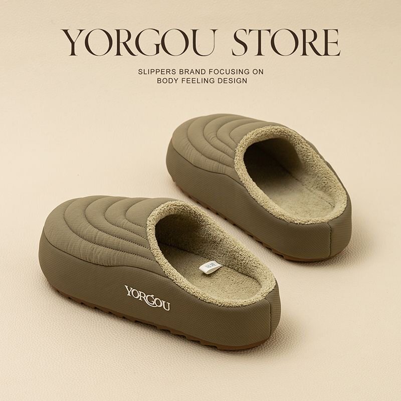 踩屎感男士棉拖鞋防水抗污冬外穿包跟保暖2025新款加绒厚底棉鞋女