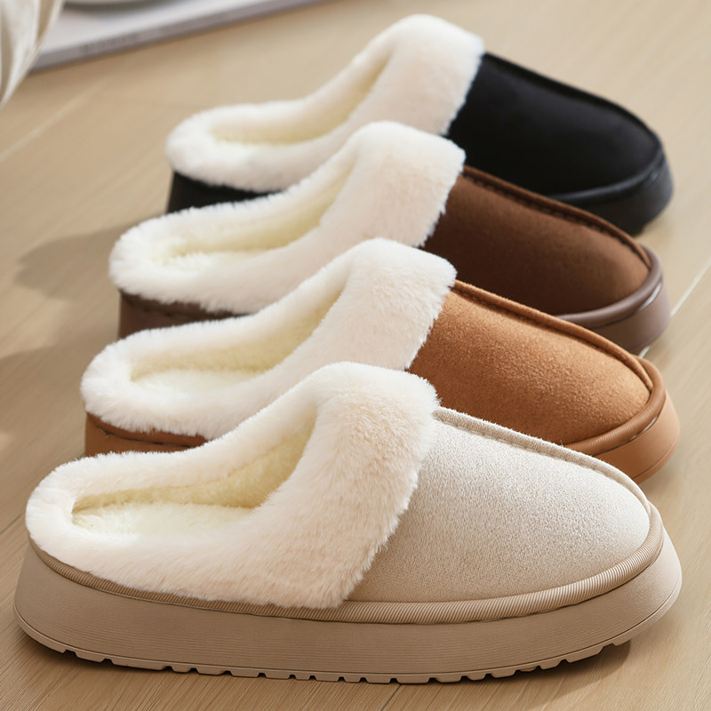 朴西新款秋冬季女居家用室内保暖厚底毛绒情侣防滑软底加绒棉拖鞋