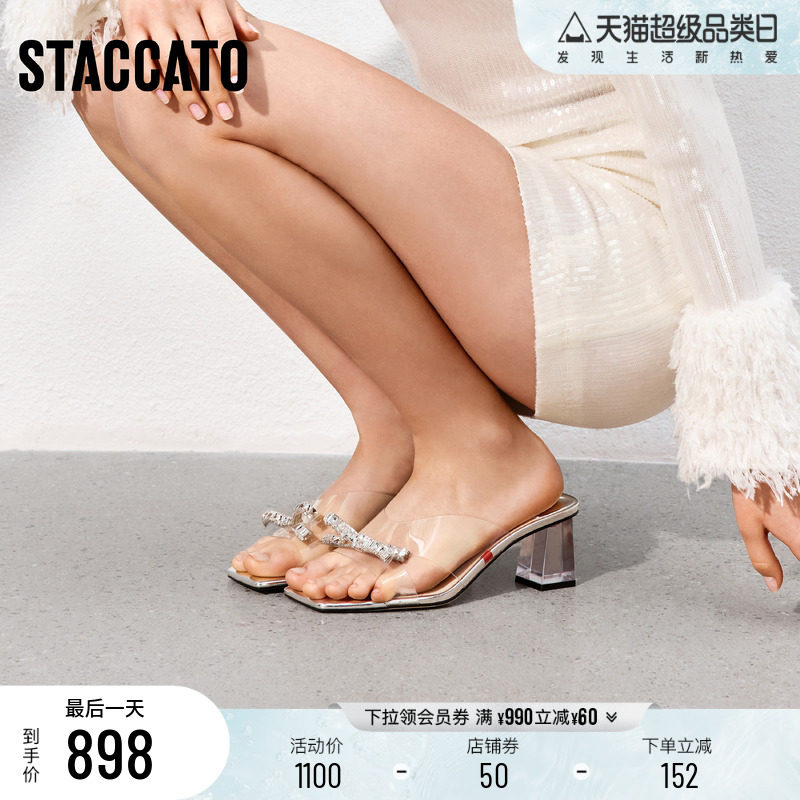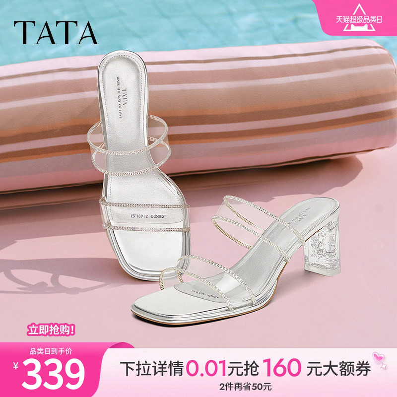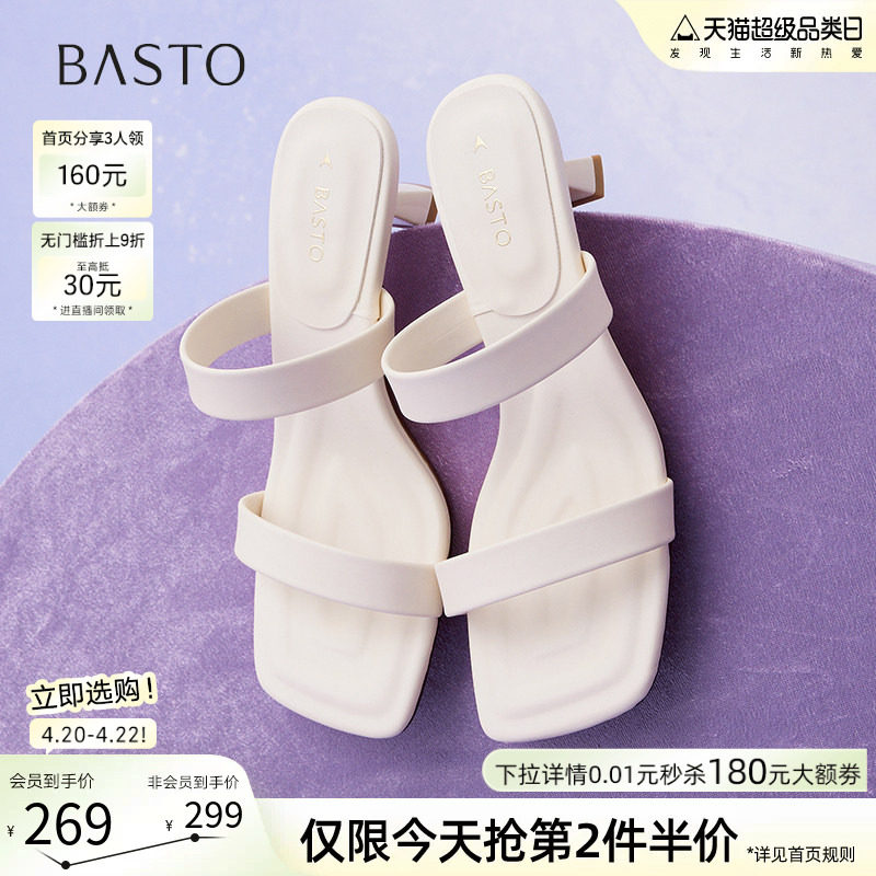 百思图夏季商场新款时尚通勤一字拖细高跟外穿女拖鞋B5297BT5