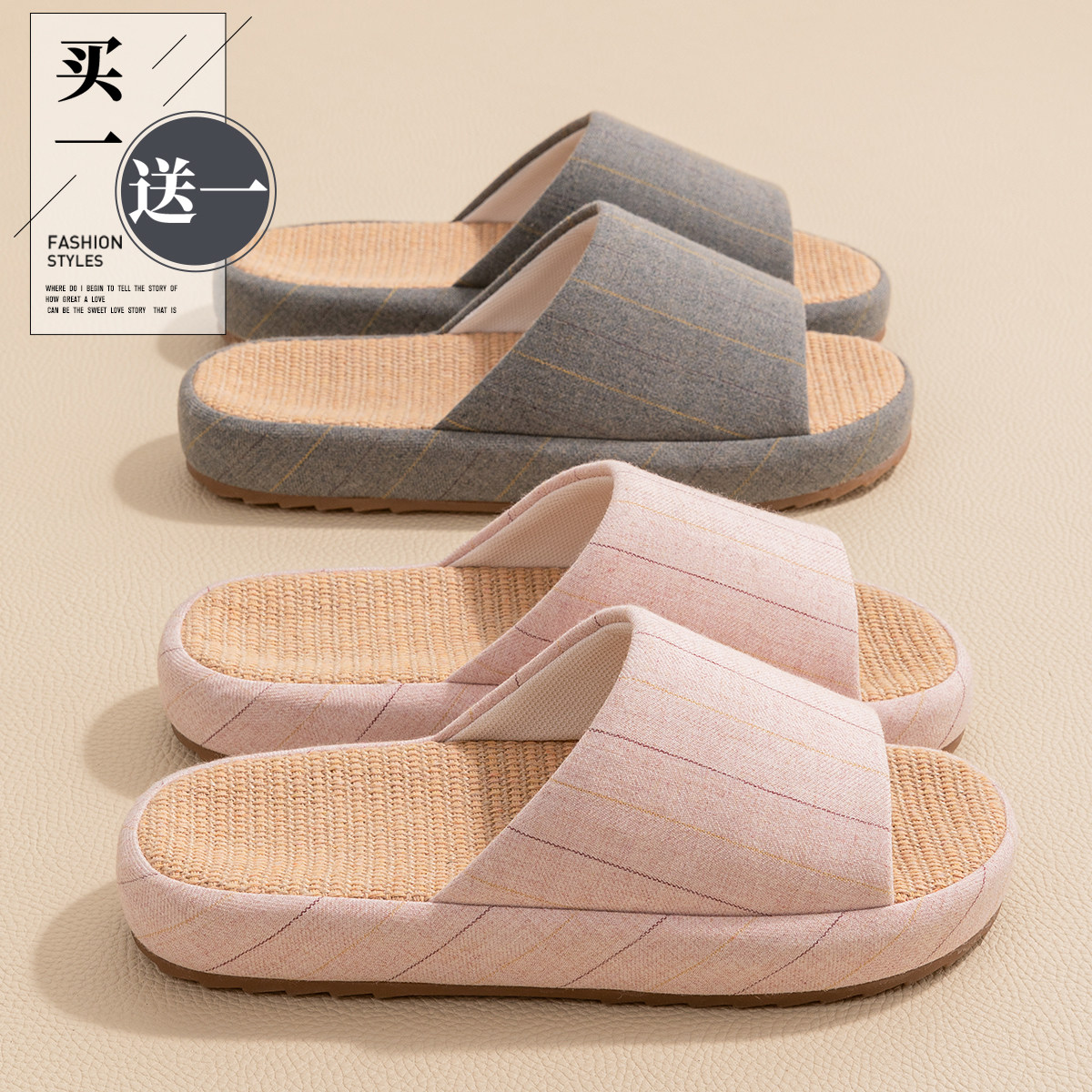 利达妮买1送1亚麻拖鞋情侣家居一对室内居家防滑防臭静音拖鞋四季