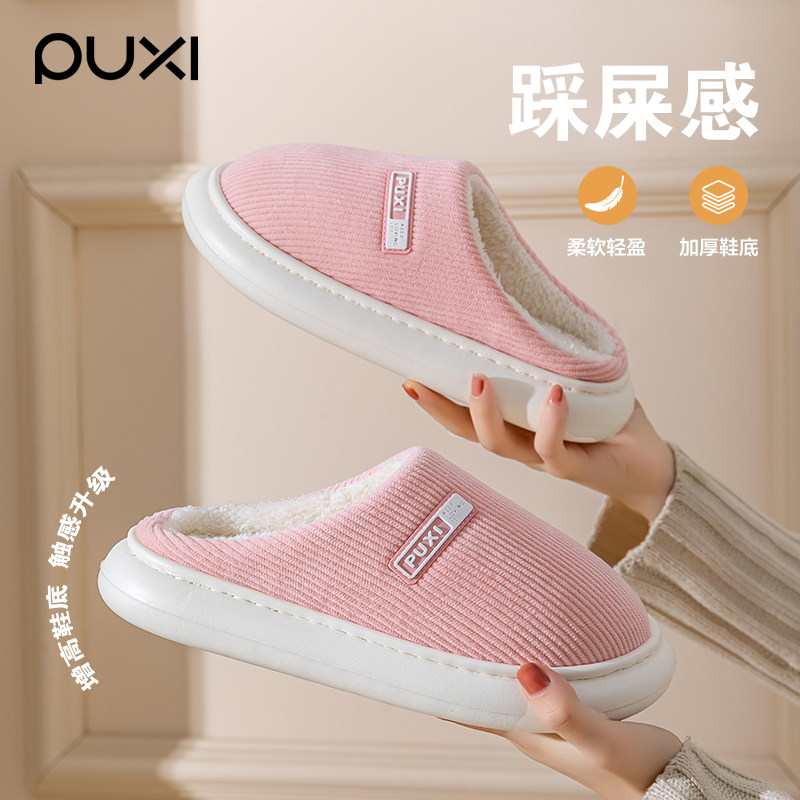 朴西月隐加绒棉拖鞋女2025秋冬居家室内加厚保暖毛绒抗菌拖鞋家用