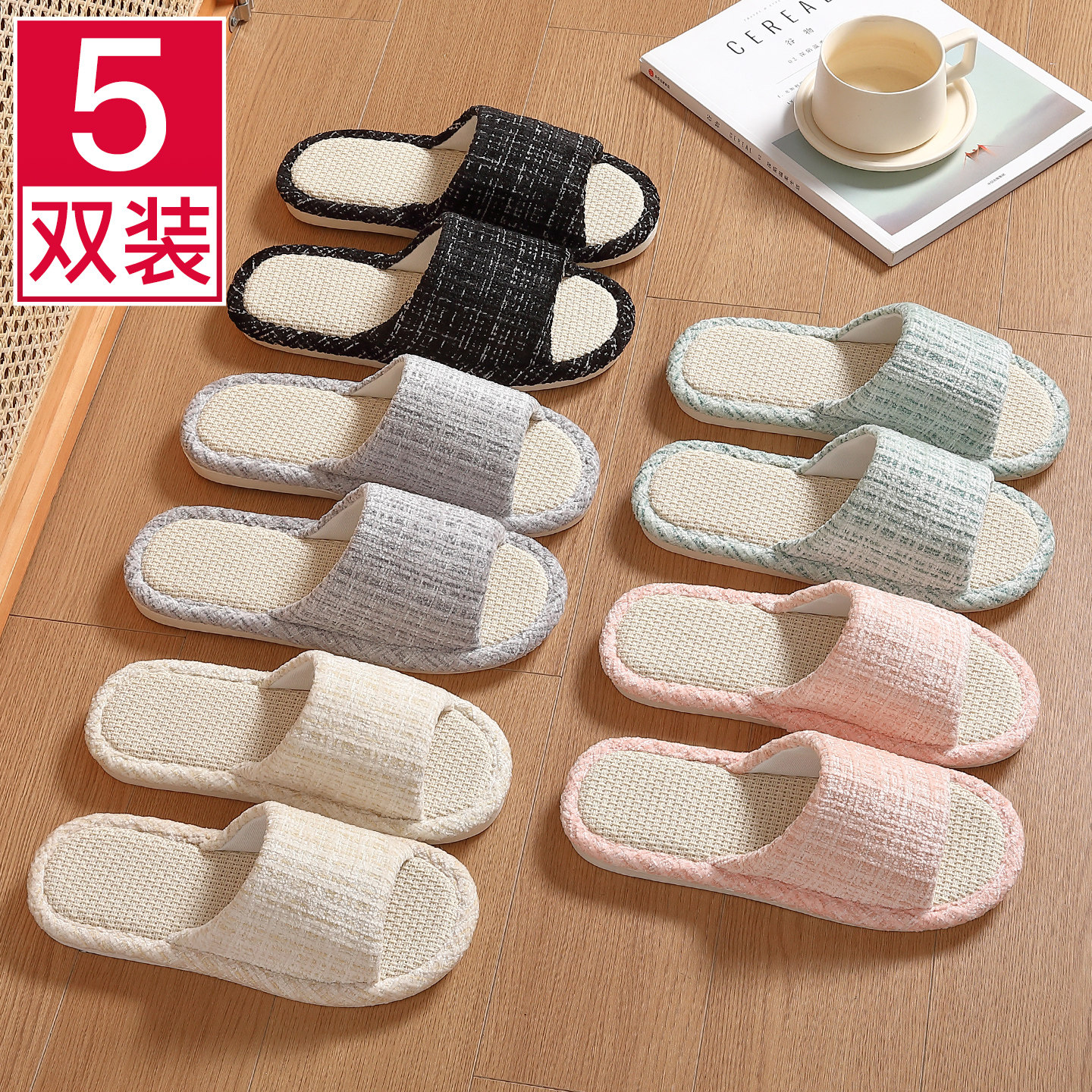 亚麻拖鞋女款室内家居防滑软底静音吸汗家用四季情侣透气棉麻拖鞋