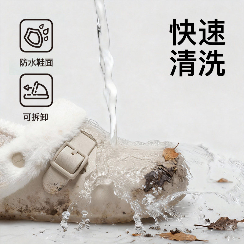 朴西冬季新款防水棉拖鞋女居家防滑保暖静音可拆卸简约情侣棉拖男