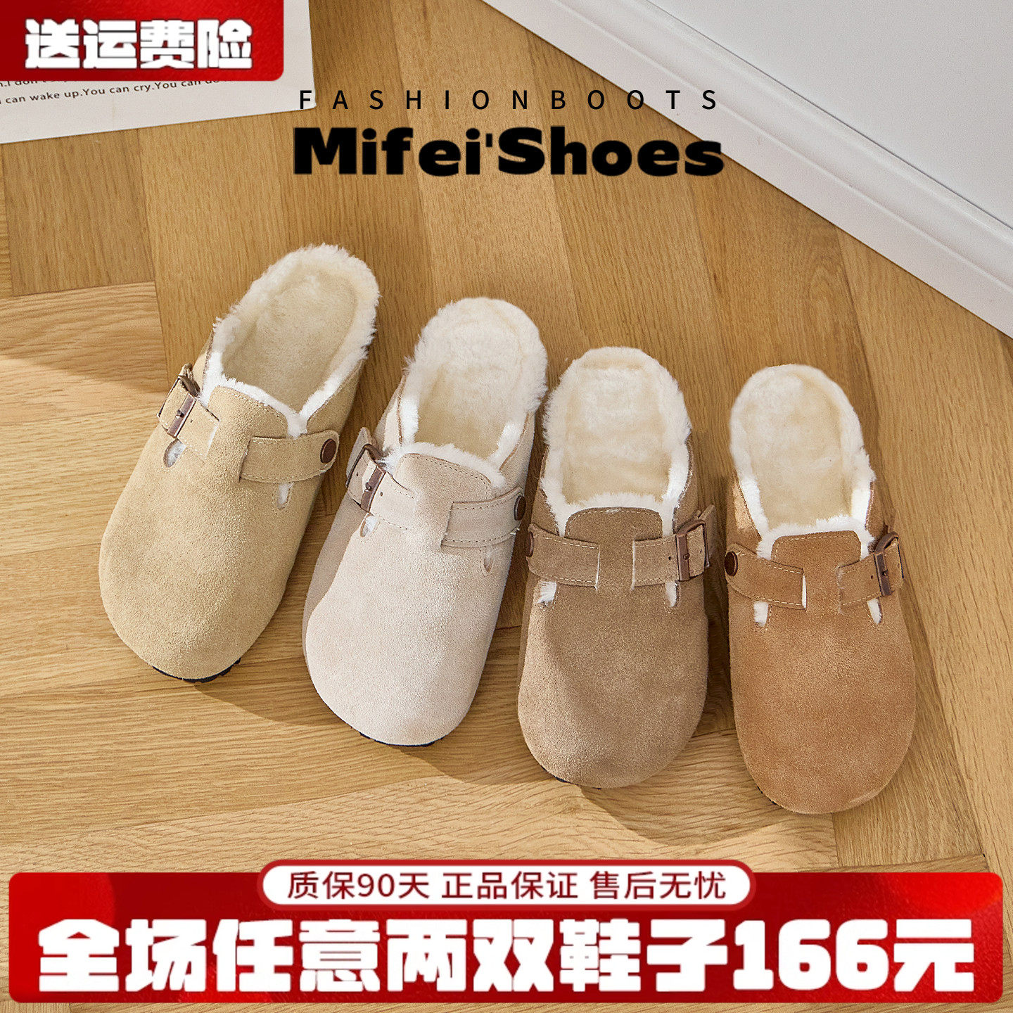真皮~厚底毛毛勃肯鞋女冬外穿一脚蹬包头半拖鞋加绒棉拖大码女鞋