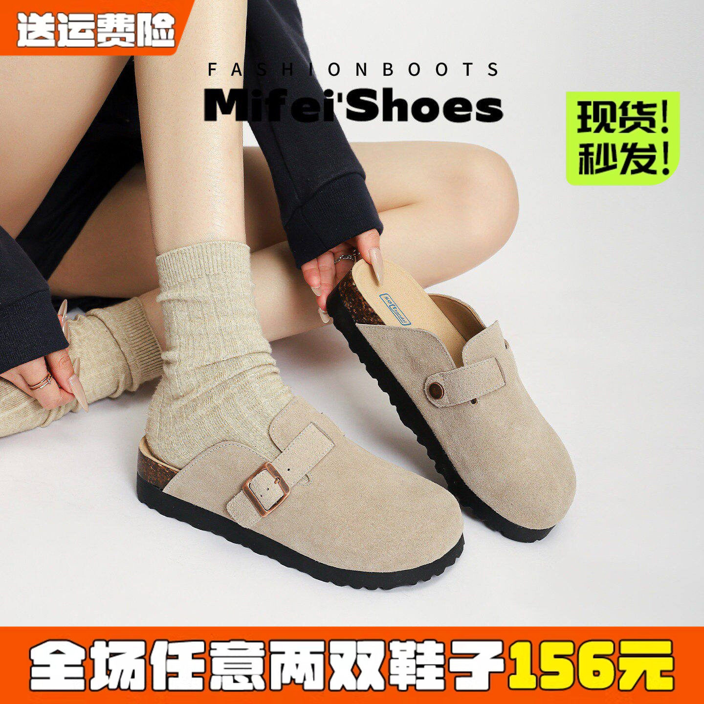 真皮~厚底勃肯鞋女外穿2026新款一脚蹬包头半拖鞋大码女鞋41到43