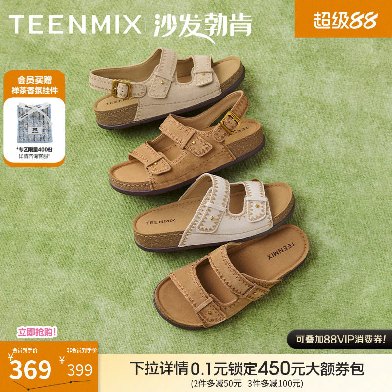 原创【王小毒】日光浮岛●内增高5cm~绒面包头拖鞋女复古勃肯半拖