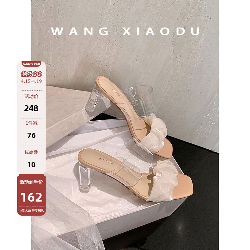 思加图新款氧气苏打外穿凉拖鞋透明法式高跟凉鞋EC401BT5