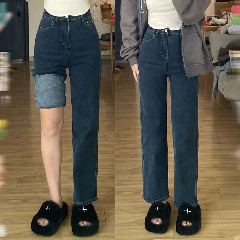 春秋季高腰显瘦梨型身材裤子in复古小个子宽松直筒蓝灰色牛仔裤女