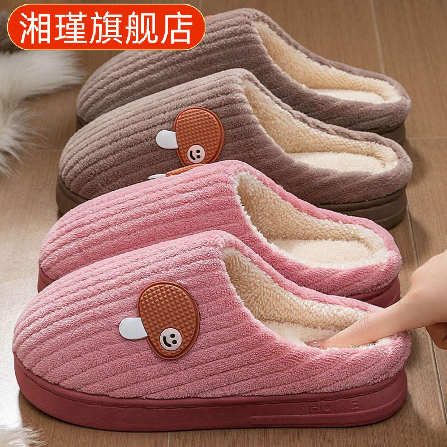 可爱红棉拖鞋女冬季舒适家居家用防滑保暖月子鞋新款毛毛拖鞋