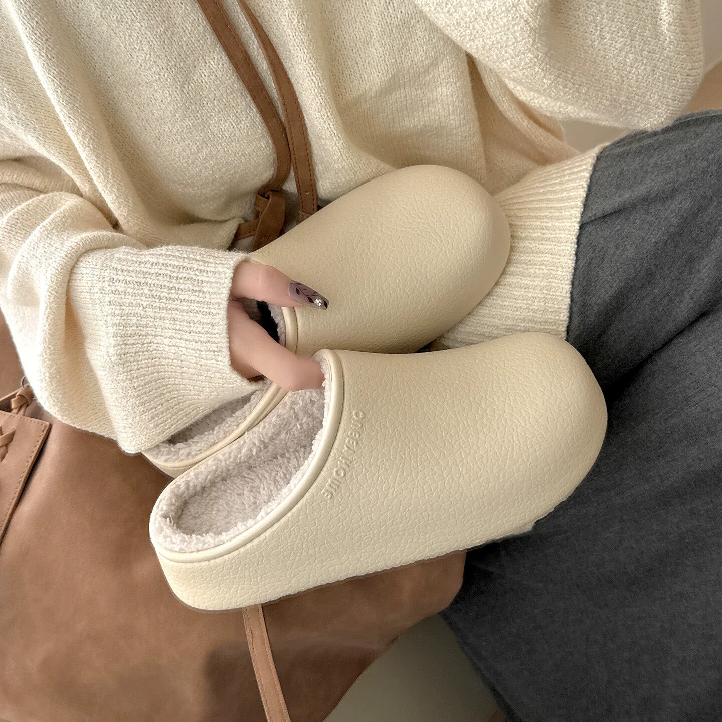北欧风皮拖鞋女秋冬季家居家用情侣办公室内静音防滑保暖棉拖鞋男