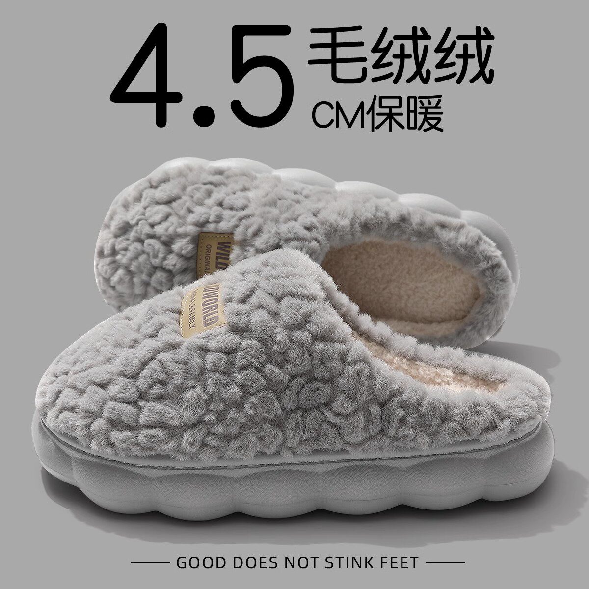 防臭棉拖鞋男秋冬季家居家用室内防滑情侣保暖地板静音毛绒女款冬