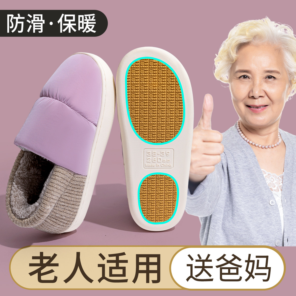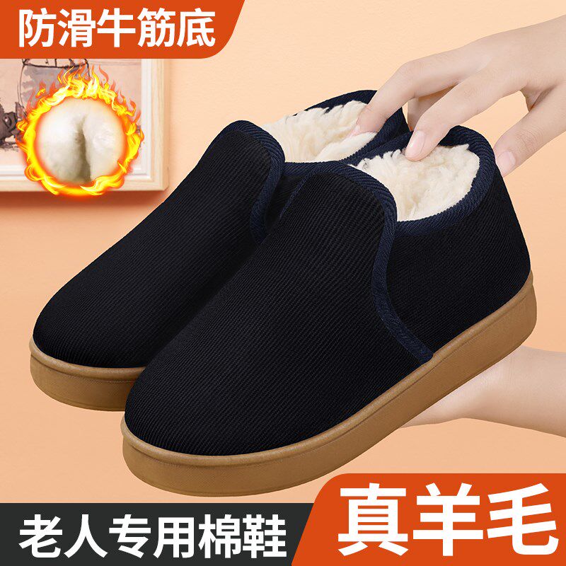 冬季棉拖鞋女包跟牛筋底家居加绒保暖羊毛妈妈鞋男款防滑老人棉鞋