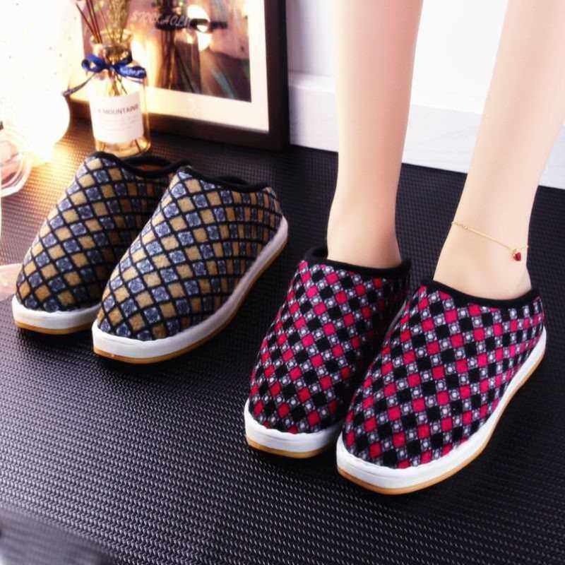 冬季女士加绒加厚包跟棉拖鞋居家外穿防滑厚底中老年保暖毛毛棉鞋