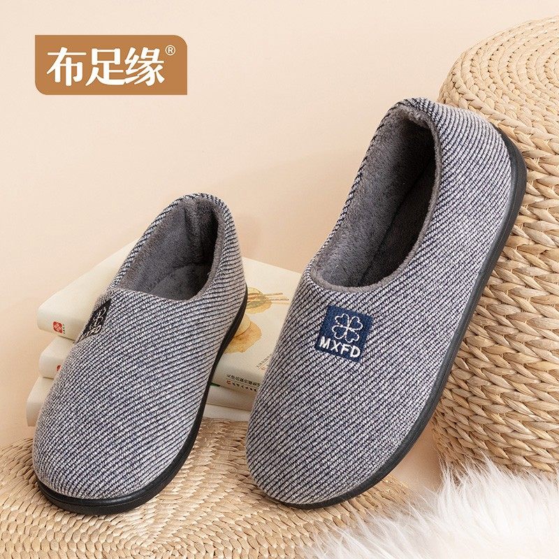 布足缘冬季棉拖鞋男包跟厚底居家外穿新款老年人防滑带后跟保暖