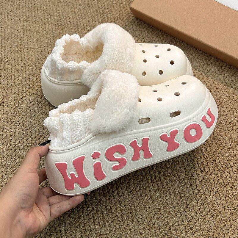 可爱红棉拖鞋女冬季舒适家居家用防滑保暖月子鞋新款毛毛拖鞋