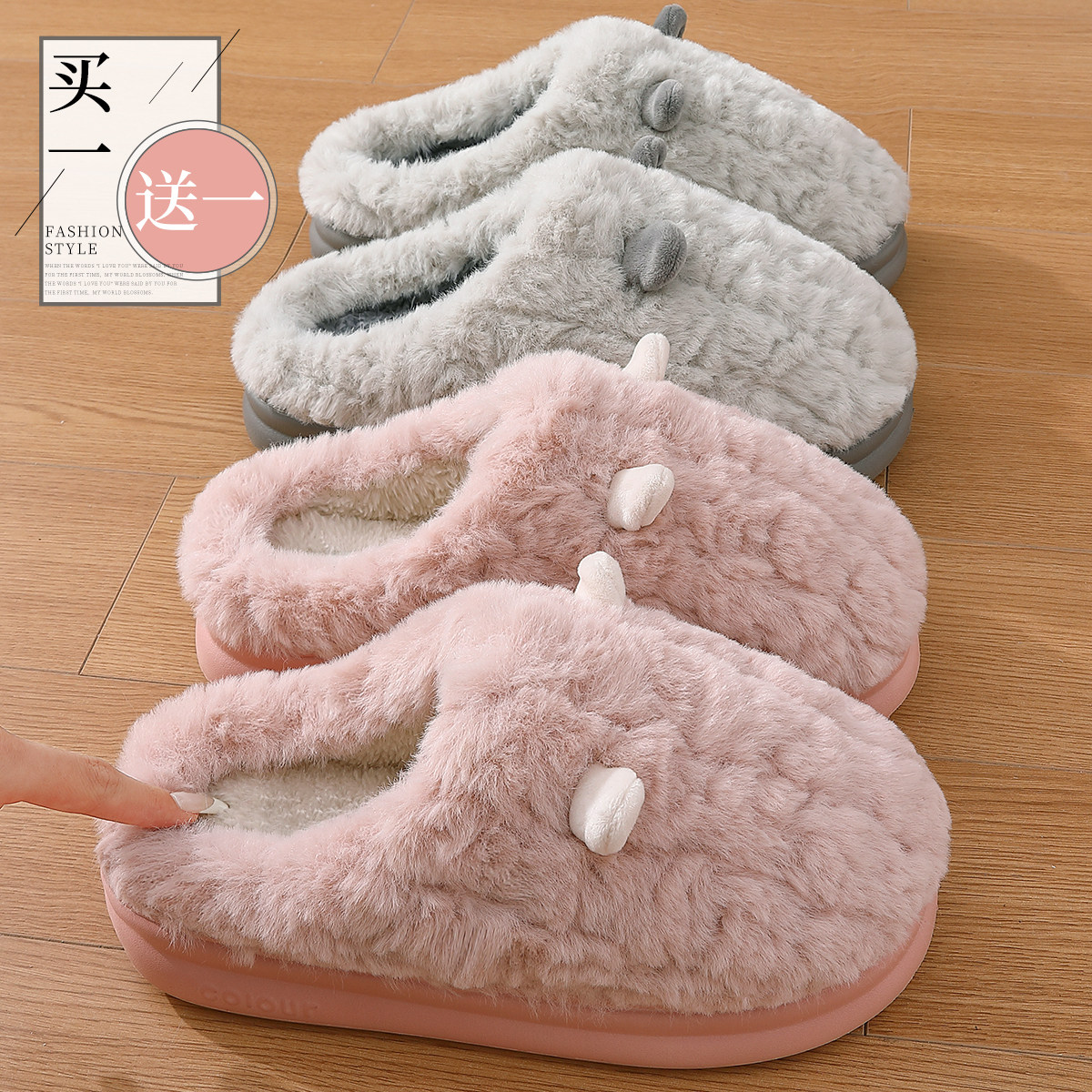 买1送1情侣棉拖鞋女士秋冬季2024新款室内家居一T对保暖毛绒棉拖