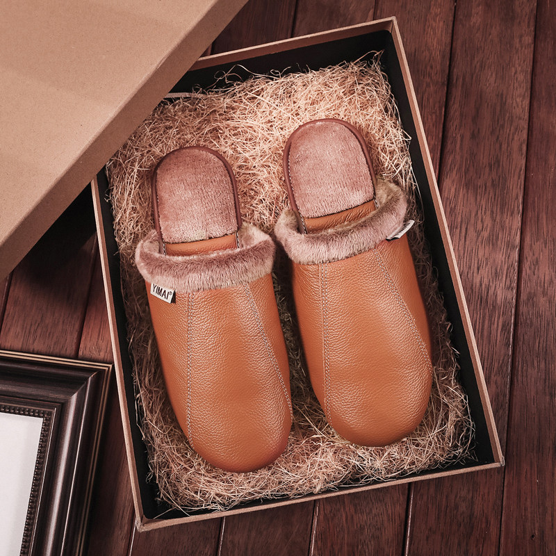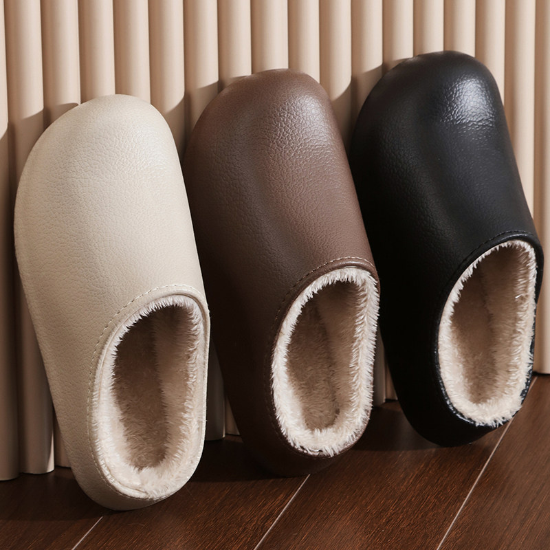 极速秋冬季真皮面棉拖鞋男女冬款家居家室内防水防V滑情侣保暖牛