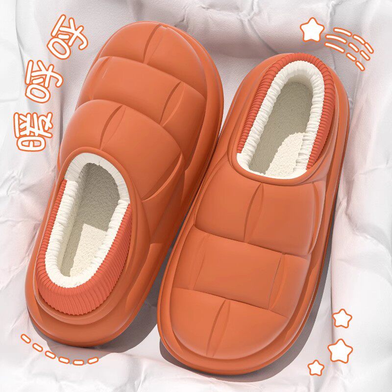 棉拖鞋女秋冬季月子家居家防滑厚底踩屎感毛毛绒保暖室内情侣男士