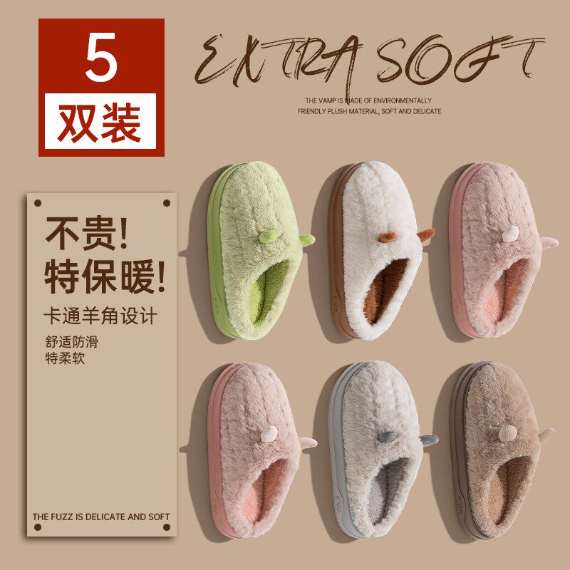5双棉拖鞋秋冬季l居家居室内情侣男女待客人保暖防滑冬天拖鞋家用