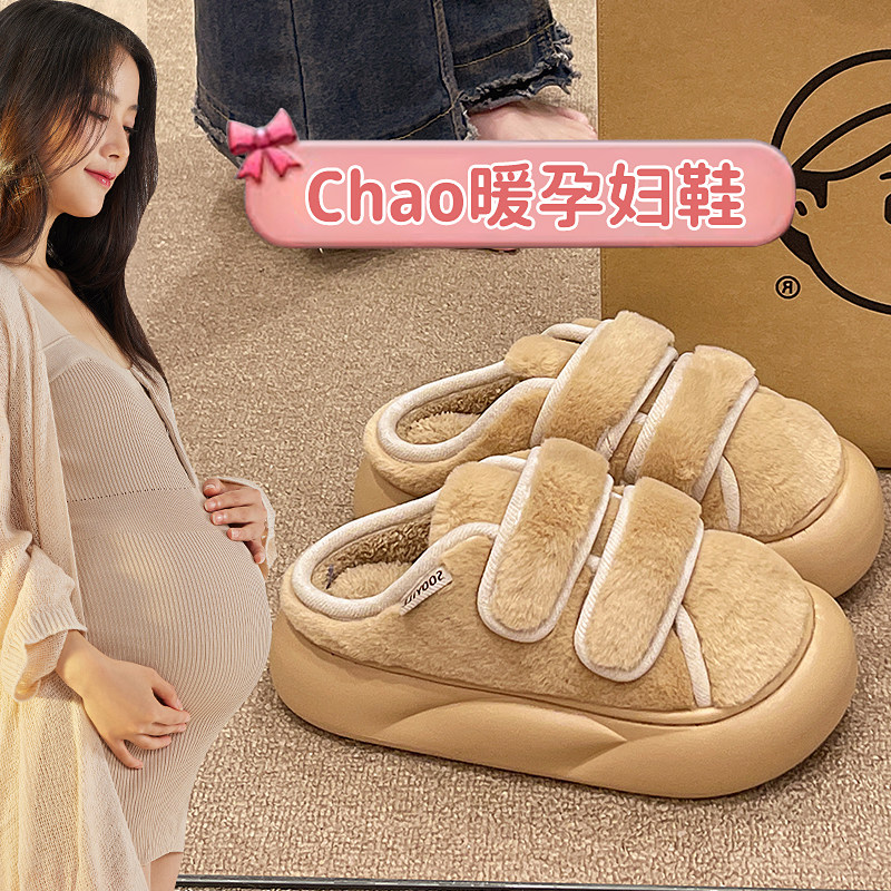 孕妇月子棉拖鞋秋冬季女士防滑加绒保暖魔术贴产后V浮肿棉拖冬天
