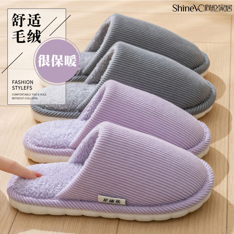 蒲西秋冬灯芯绒包,女式家用棉拖鞋室内无声防滑,羊毛衬里暖棉男