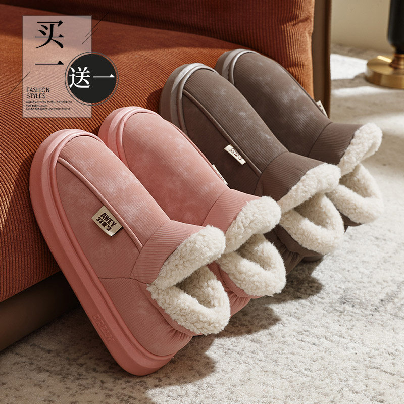 买1送1高级感棉拖鞋女士冬季2025新款家居情侣一对保暖毛绒拖鞋男