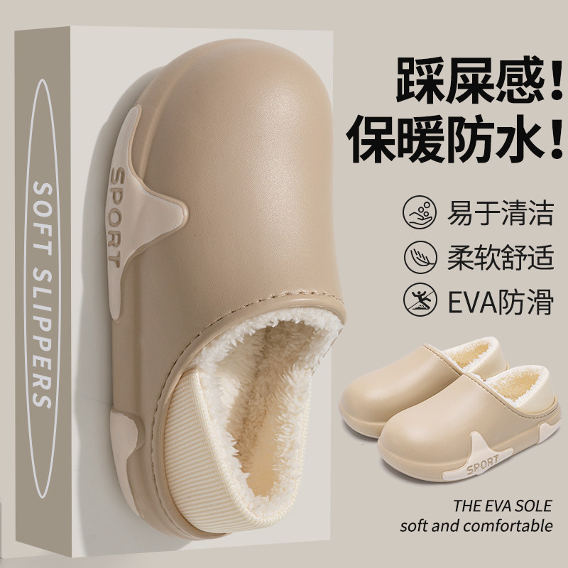 防水棉拖鞋男士室内家居2024新款防滑包跟棉鞋男款可爱秋冬季外穿