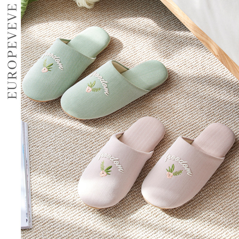 日式亚麻拖鞋女秋冬室内保暖静音情侣居家用地板防滑软底拖鞋