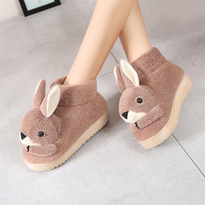极速冬天棉拖鞋女k鞋子毛毛拖鞋包跟月子棉鞋可爱兔兔厚底防滑家