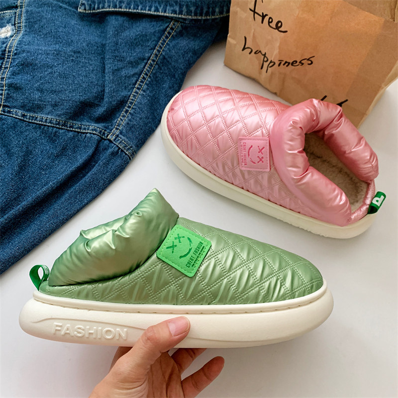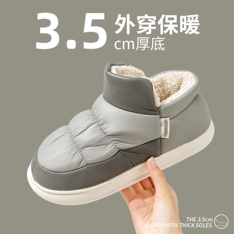 羽绒棉拖鞋男士防滑保暖居家防水棉拖女款家居厚底毛拖鞋冬季