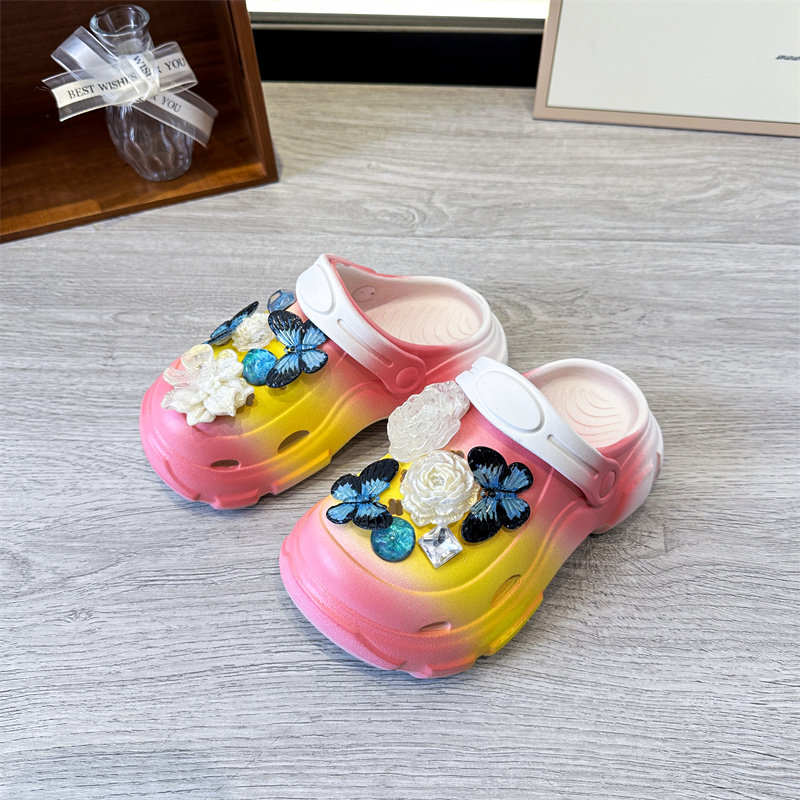 2026新款夏季渐变色蝴蝶花朵装饰儿童百搭洞洞鞋凉鞋轻便防滑拖鞋