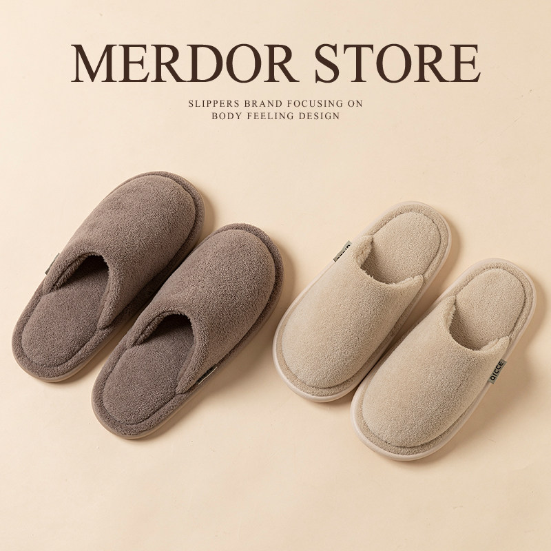 日本轻奢加绒保暖后绊带棉拖鞋女防滑居家户外厚底棉鞋